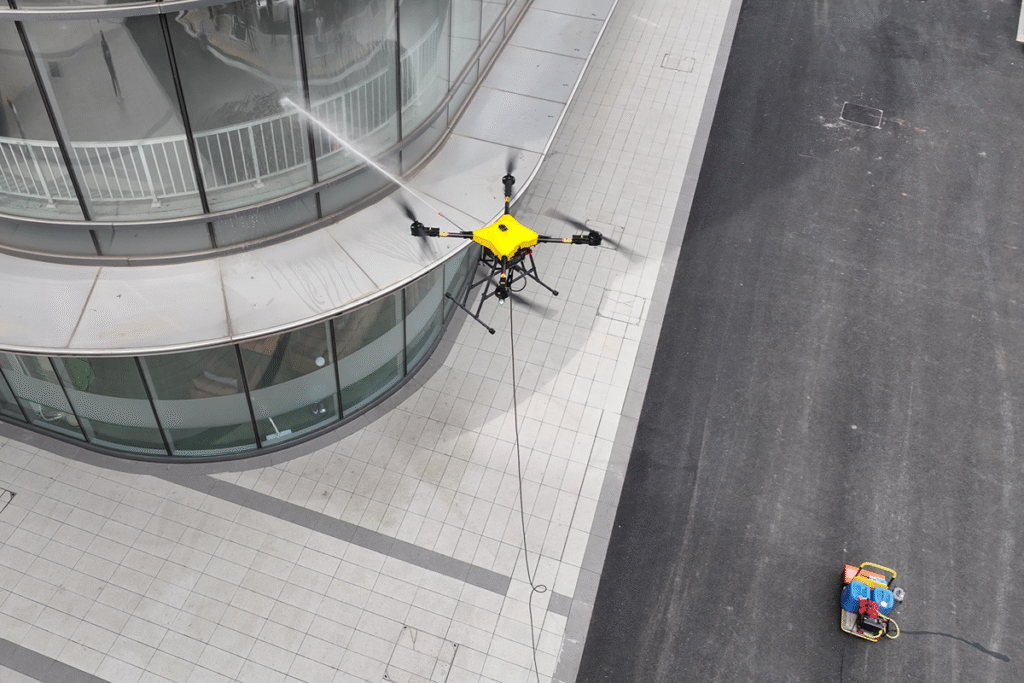 En Aerial Drone Solutions, nuestro dron de limpieza ofrece mayor seguridad, rentabilidad, eficiencia de tiempo, sostenibilidad ambiental y acceso a áreas desafiantes, revolucionando las prácticas de mantenimiento de edificios.
